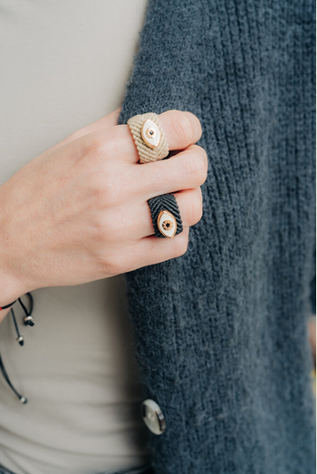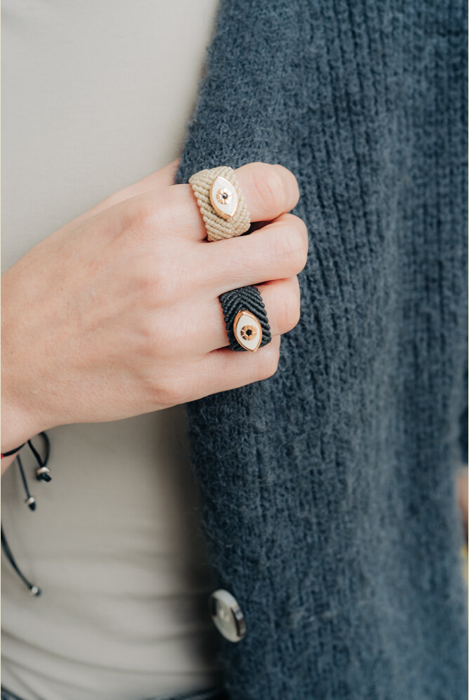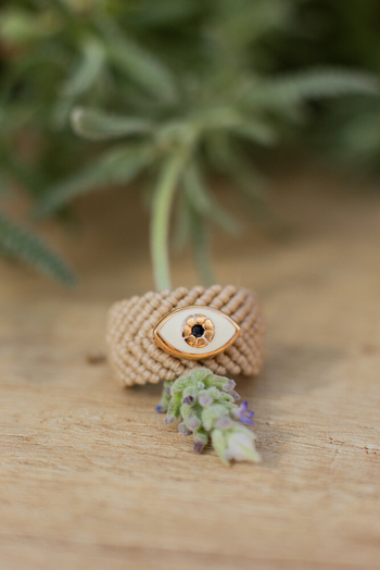 •Υλικό :Μακραμέ μπεζ δαχτυλίδι,μεταλλικό μάτι με σμάλτο