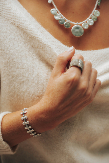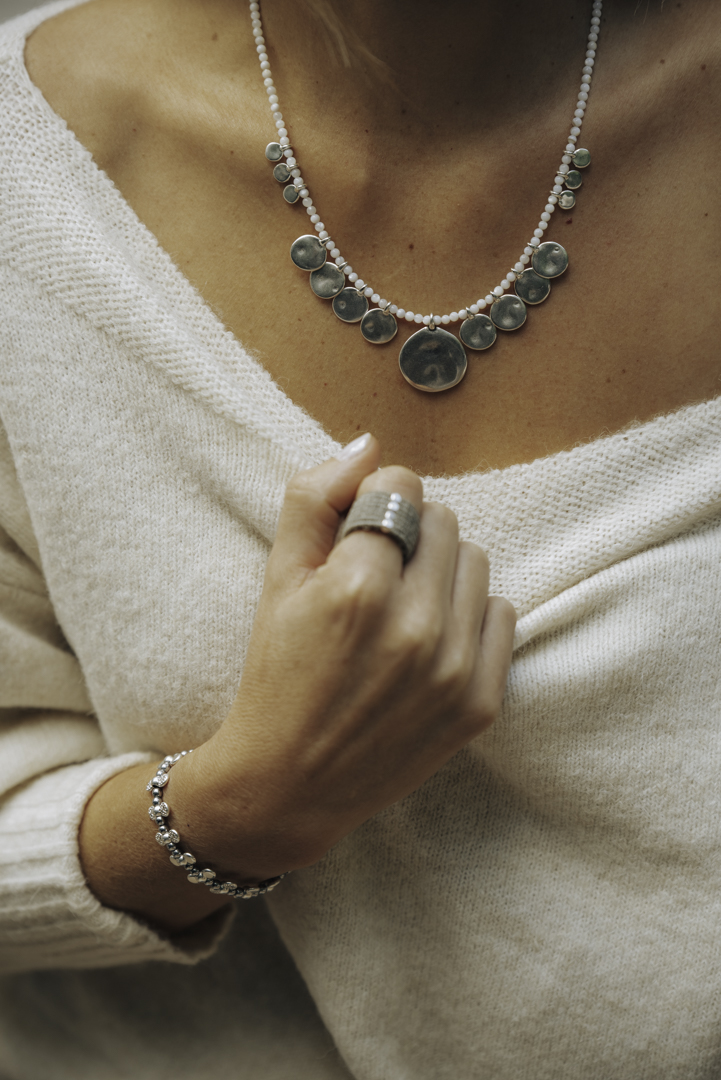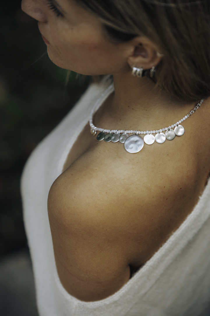 •Υλικό :Kολιέ με λευκές φίλντισι,επάργυρα στοιχεία με ασήμι 925