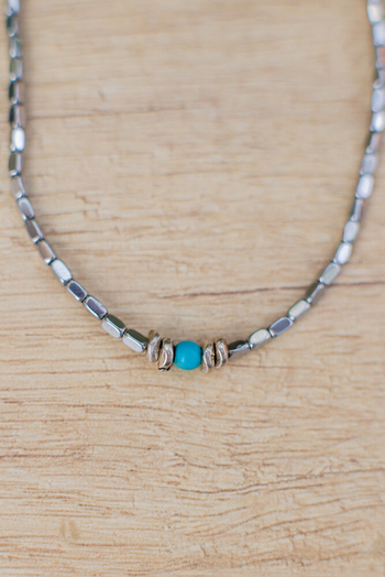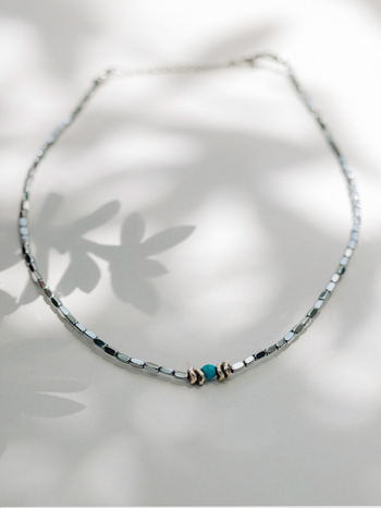 •Υλικό :Kολιέ με ασημί χάντρες αιματίτη,τιρκουάζ χαολίτης,επάργυρα στοιχεία