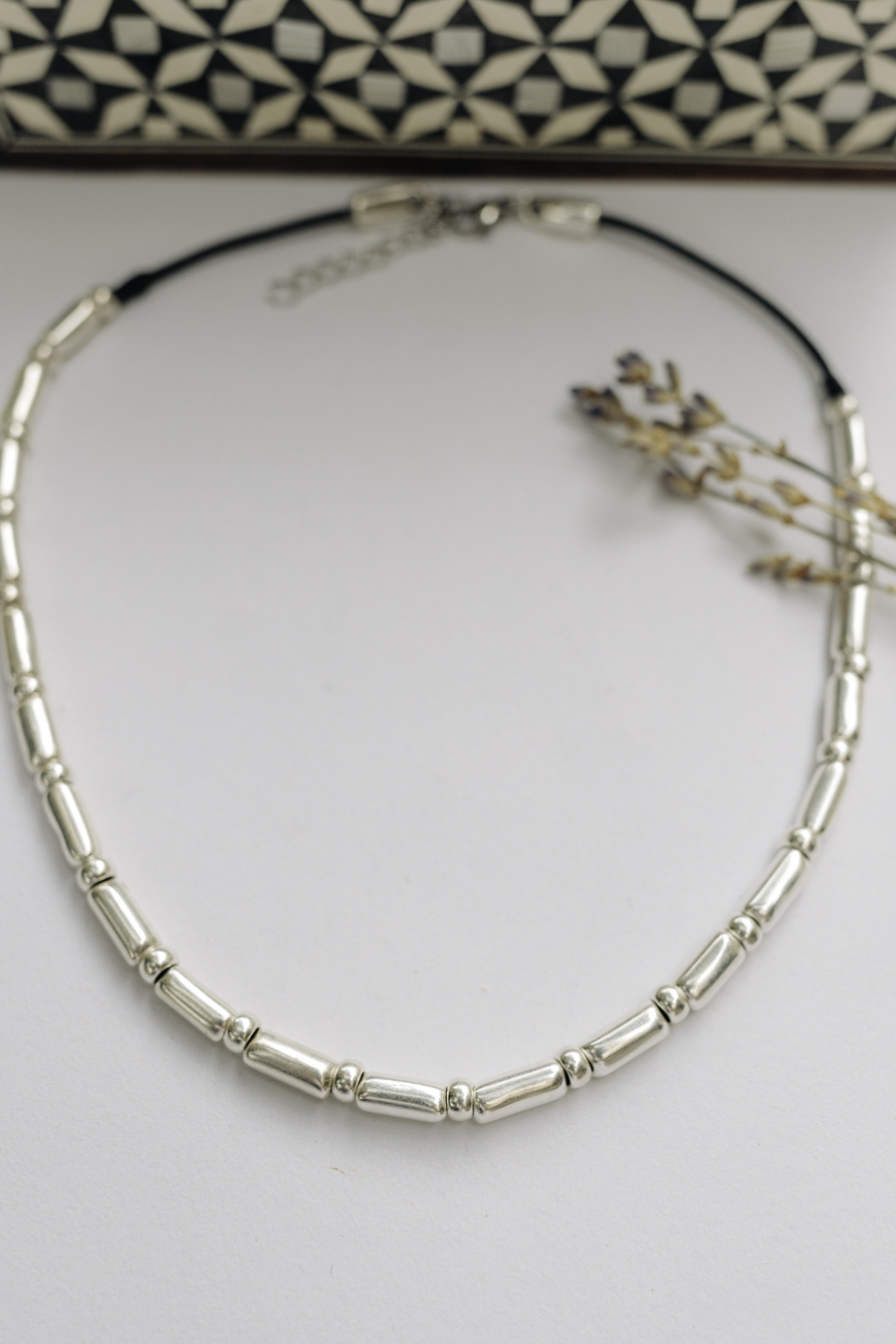 •Υλικό :Κολιέ με μαύρο κορδόνι κ επάργυρα στοιχεία από ασήμι 925