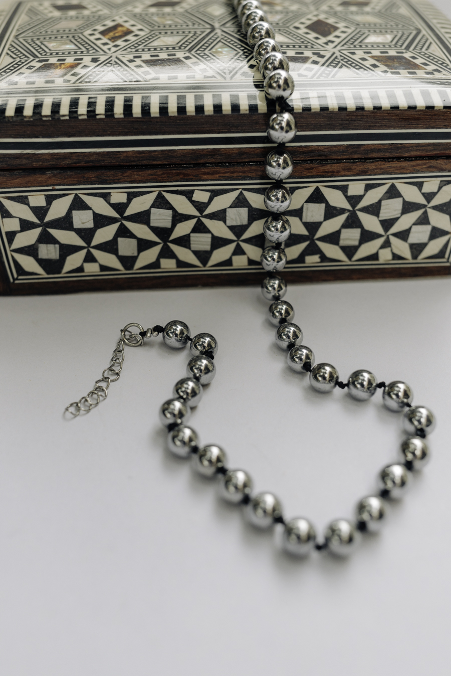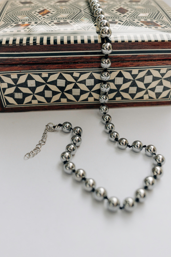 •Υλικό :Kολιέ με χάντρες αιματίτη κ μαύρη κηρωμένη κλωστή