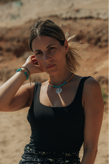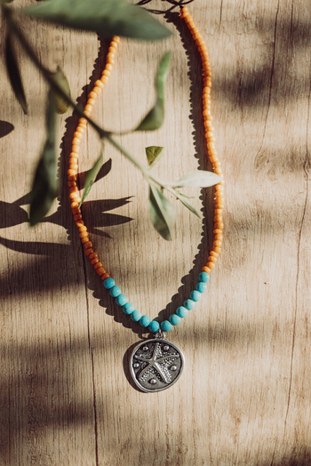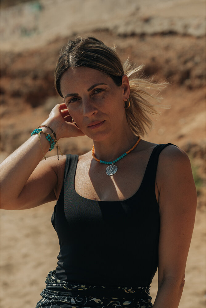•Υλικό :Κολιέ με επάργυρο στοιχείο με ασήμι 925,χάντρες χαολίτη τιρκουάζ κ κίτρινες γυάλινες