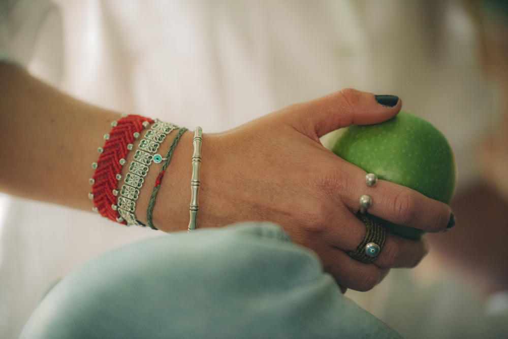 •Υλικό :κηρωμένη μπέζ κλωστή,επάργυρα στοιχεία από ασήμι 925