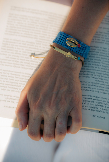 •Υλικό :κερωμένη κλωστή,επίχρυσο στοιχείο χάντρα χαολίτη.